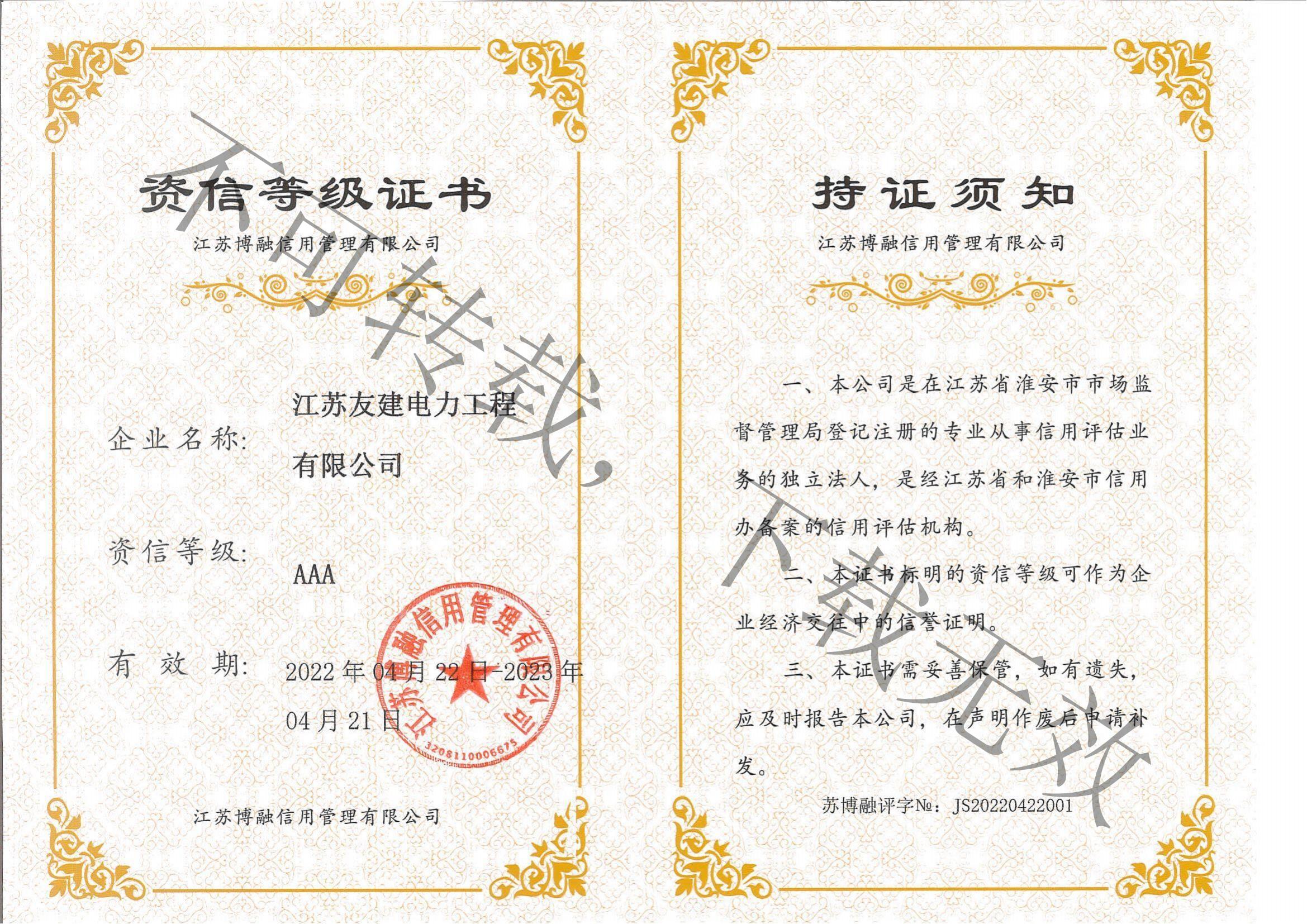 信用等級(jí)證書(shū)
